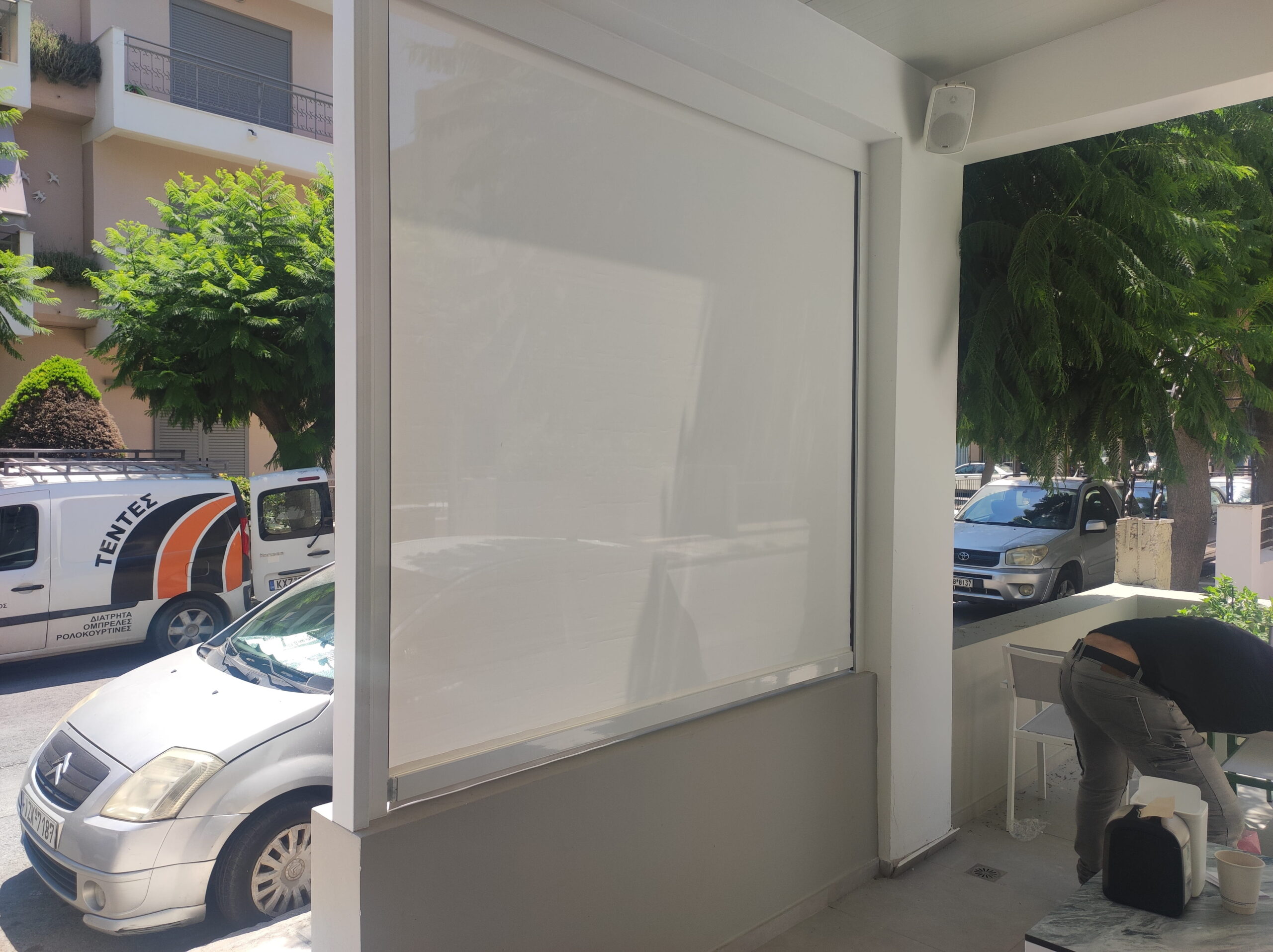Κατάστημα Κολατσιό | Κάθετο σύστημα με οδηγούς zip και διάτρητο ύφασμα