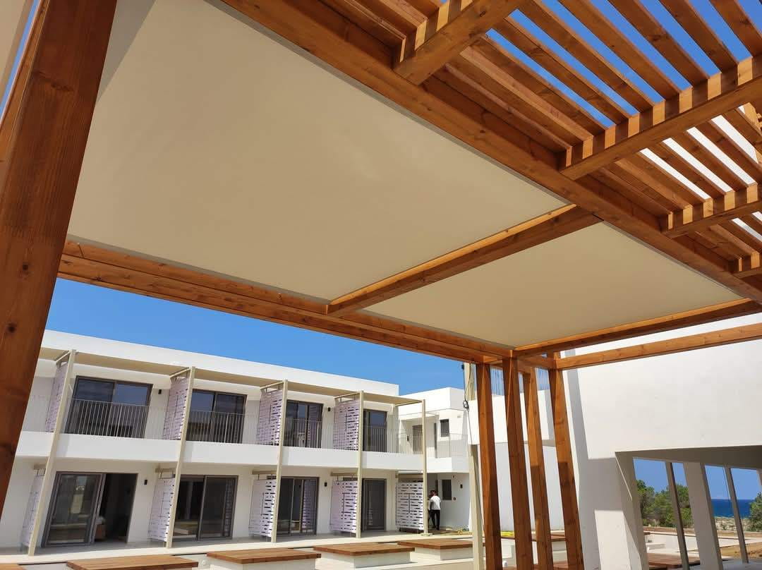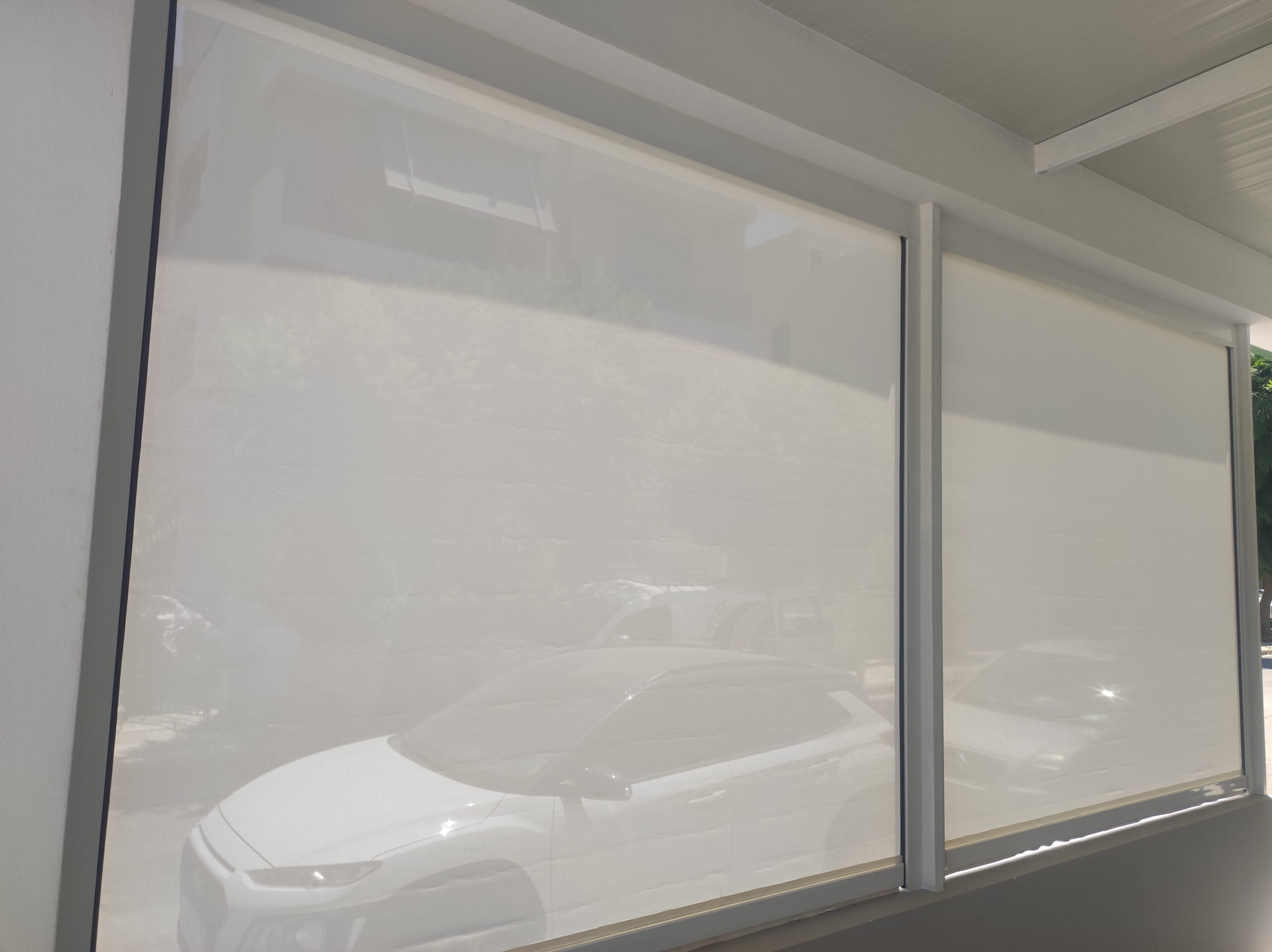 Η λύση συνδυάζει λειτουργικότητα και branding σε ένα σύστημα: αντηλιακή προστασία, ιδιωτικότητα και σχεδιαστική συνέπεια, μέσω υφάσματος εκτυπωμένου με προσαρμοσμένο γραφιστικό, σε πλήρη αρμονία με τον χώρο και τη χρήση του.